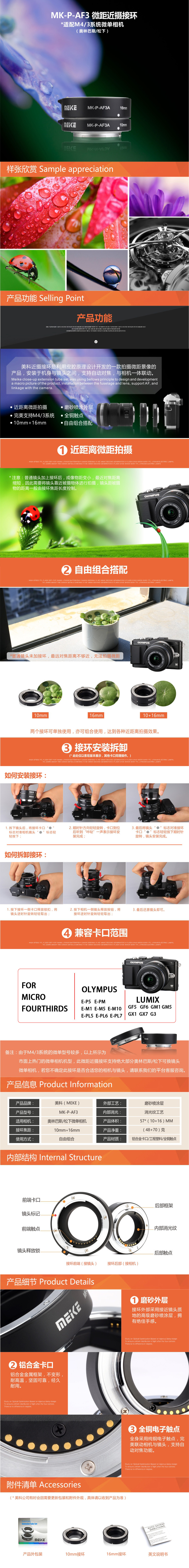 ◆ M4/3微距近攝二接環(huán)是由一個16mm和一個10mm的單獨接環(huán)組合的,兩個接環(huán)既能單獨使用亦可組合使用,裝上之后能縮小鏡頭的最短對焦距離,達到局部微距效果。
